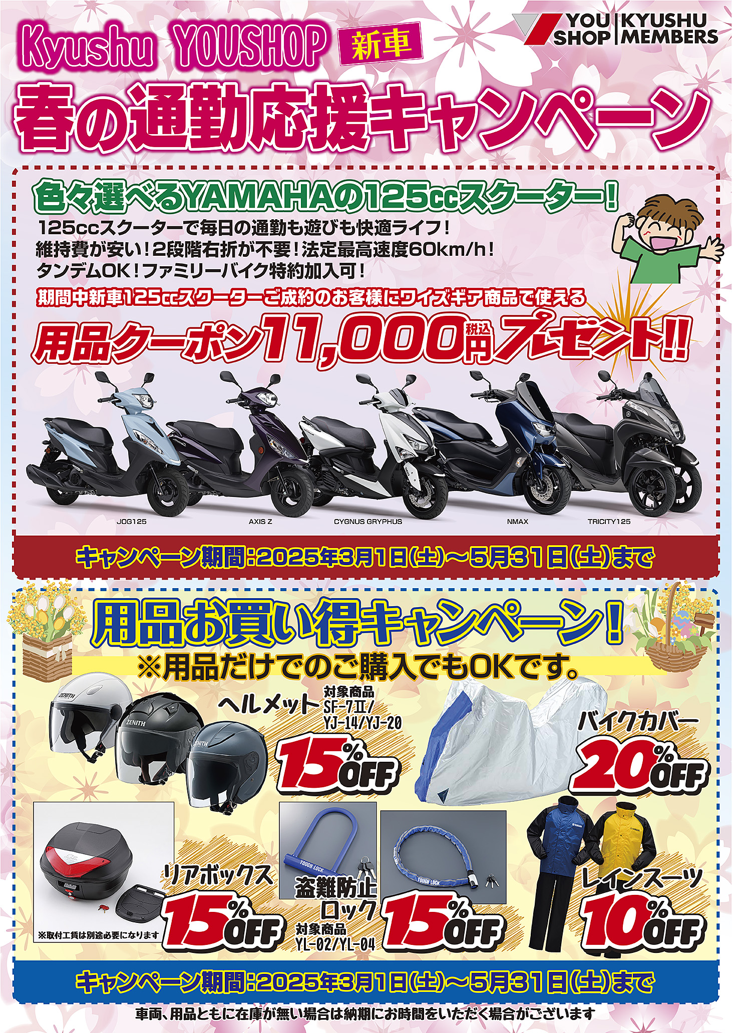 鹿児島市ヤマハ専売スポーツバイク正規販売店 YOU SHOP 協和 > 最新情報(ブログ) > お知らせ > 九州YOU SHOP会 春の通勤応援キャンペーン > img_02502_ys_cmp_web